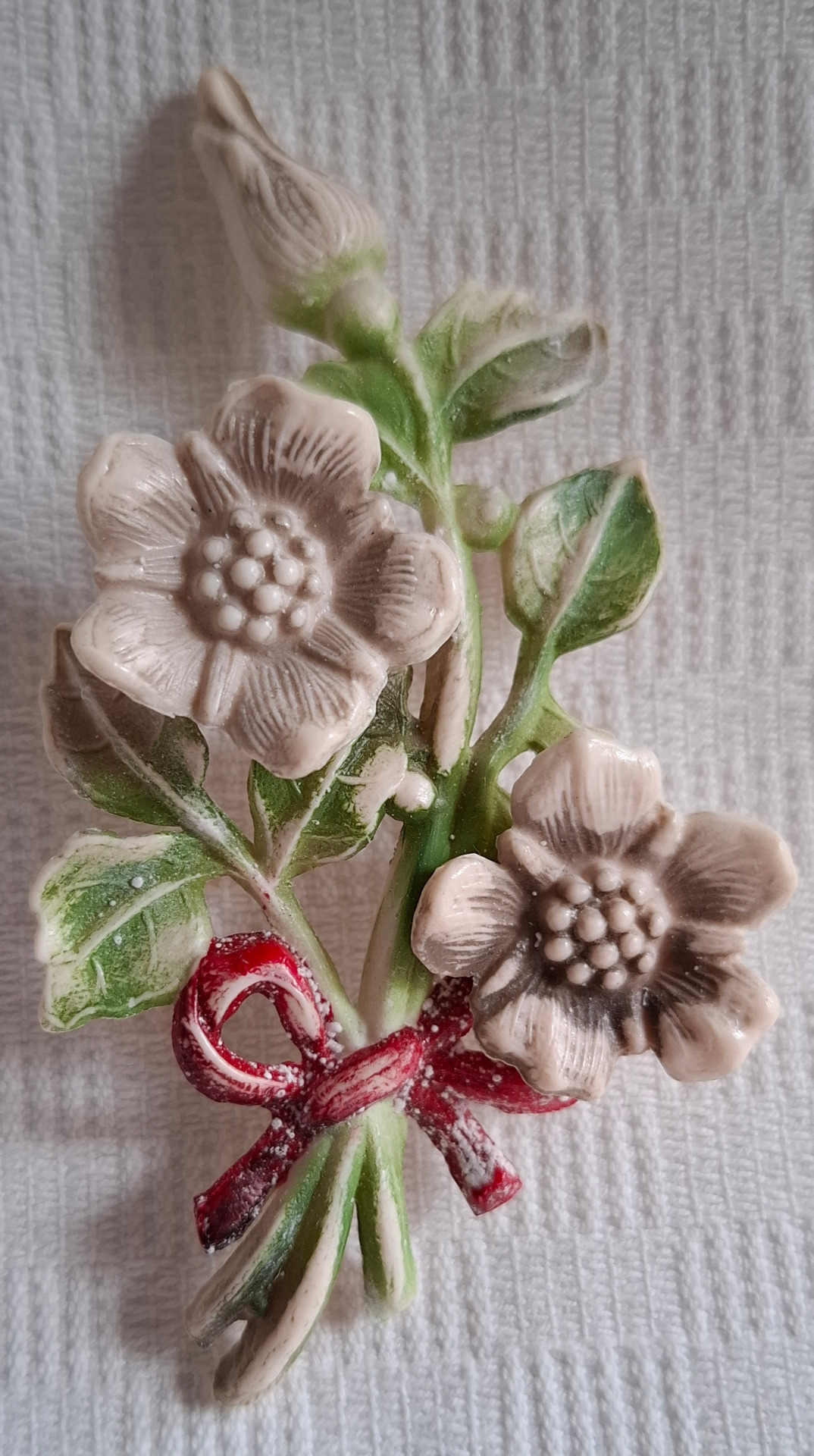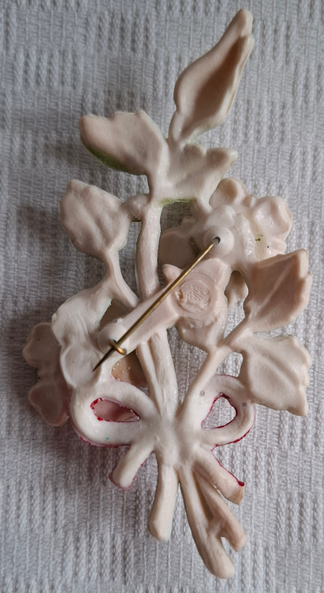 Denna brosch är gammal och har nog tappat en del färg. Storlek ca 9 cm lång. Broschen är hel.