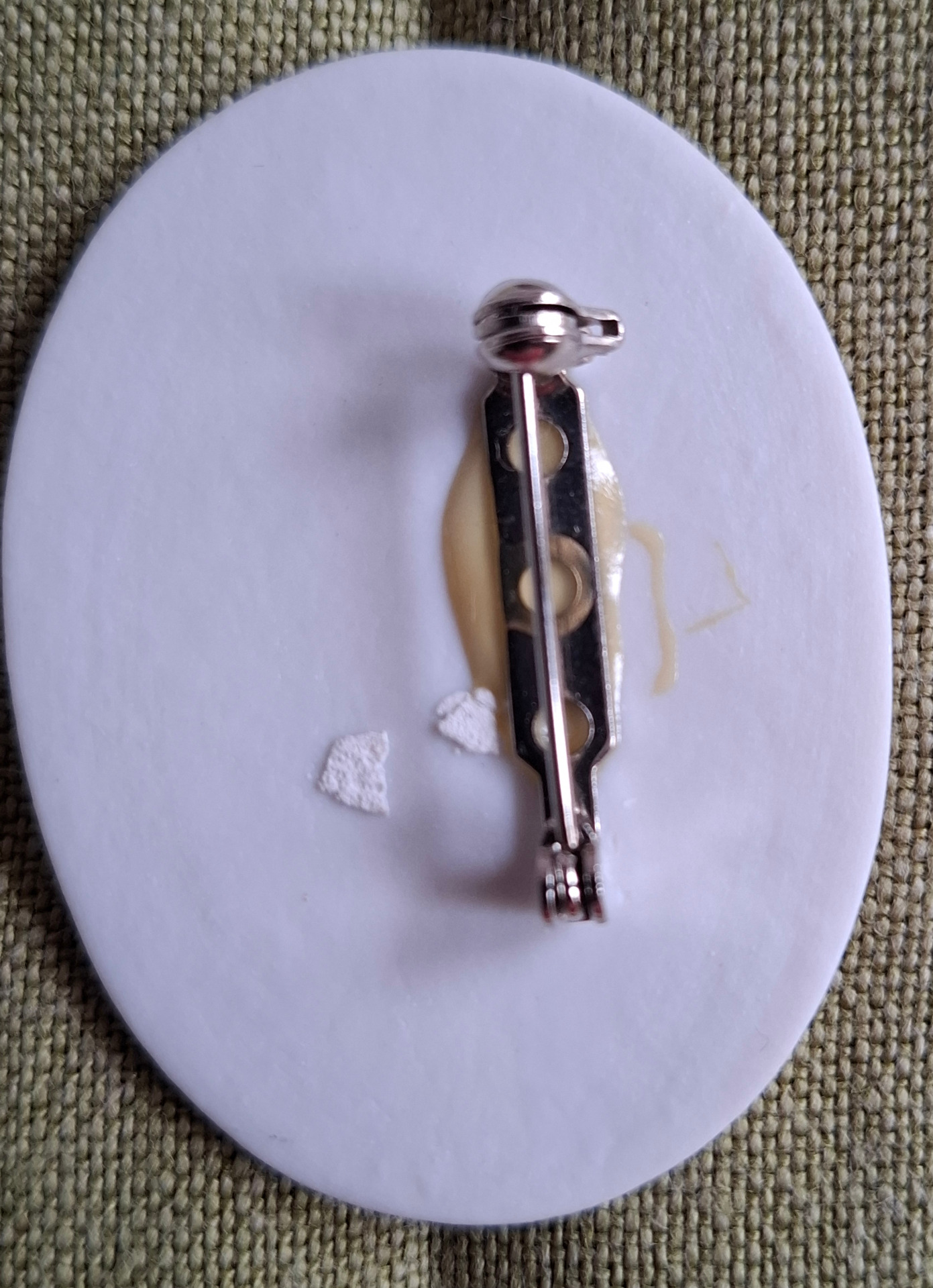 En vintage brosch med en vacker rosa ros design. Broschen är målad på porslins platta. Storlek ca 5x4 cm Perfekt för att lägga till en touch av elegans till din outfit.