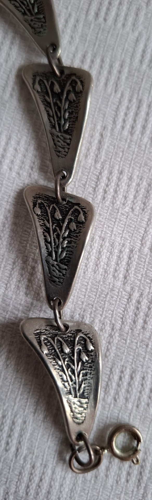 Armband med 6 st länkar ca 18 cm långt, brosch ca 4,5 x 3,5 cm,